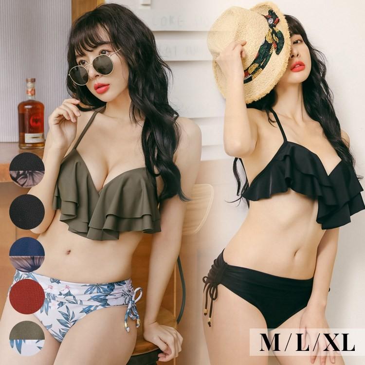 水着 レディース ビキニ 無地 花柄 ブラック 黒 上下別 フリルビキニ の通販はau Pay マーケット Lis Store